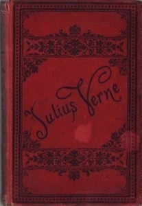Hartleben „Julius Verne’s Schriften“ inklusive farbigen Broschur – Einband – Bild mit goldgeprägtem Titel, aber nur geprägter Ornamentik auf Deckel und Rücken. |